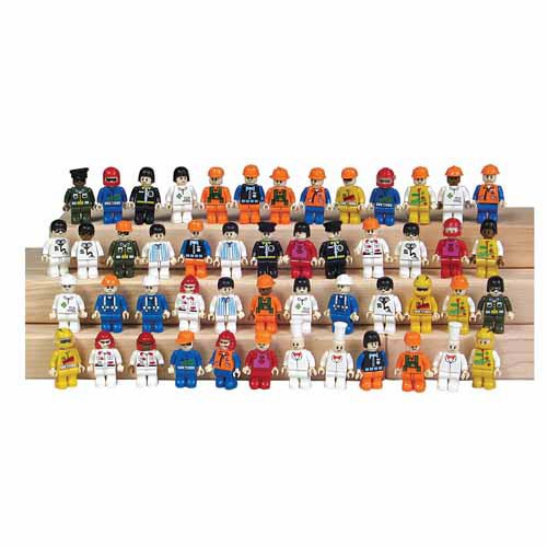 Populate any Interlocking Preschool Bricks set with these 50 multi-ethnic individuals. Each 1 3/4 H. plastic figure has posable arms, legs, and heads. Compatible with Lego(R) bricks*. People in sets may vary. Ages 4 yrs. +."