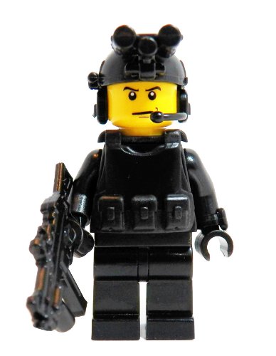 Our new custom Black Ops Soldier is outfitted with the latest Military Gear. Weapons and armor include a B10 Tactical Vest with a removable BA16 Backpack, Headset, Helmet, Night Vision Goggles, Watch, UMP45 Machine Gun, and a removeable Silencer.